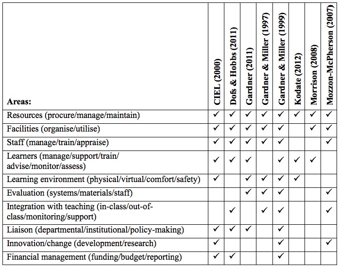 Table 1. The Potential Duties of a SALL Manager (after Gardner, 2011, p. 187)