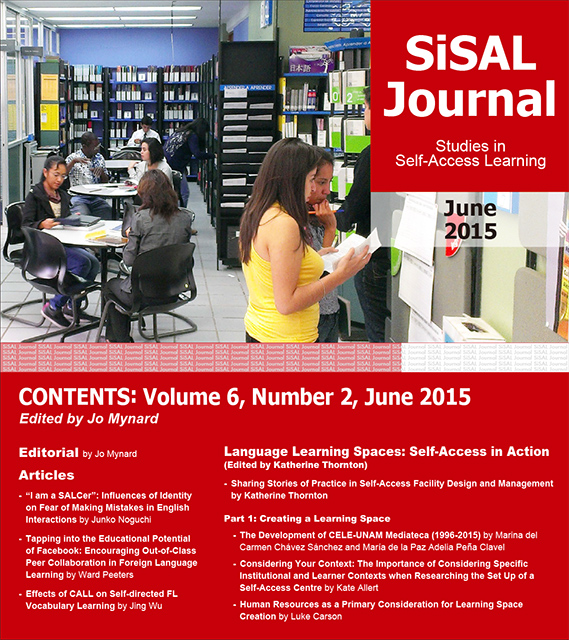 Second call for papers. Special Issue on Self-Access and Young Learners. December, 2015 (Volume 6, Issue 4) edited by Annamaria Pinter, Robert J. Werner and Jo Mynard. DEADLINE FOR SUBMISSIONS: August 10th, 2015. Read more..