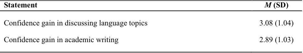 Table 2. Students’ Self-Assessment on Confidence Gain (Post-Questionnaire)