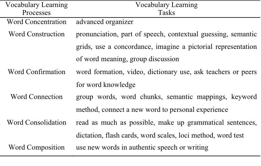 Wu, J. (2012). Construction, specification and validation of a new framework of vocabulary learning processes. Fudan Journal of the Humanities and Social Sciences, 5(4), 116-137.
