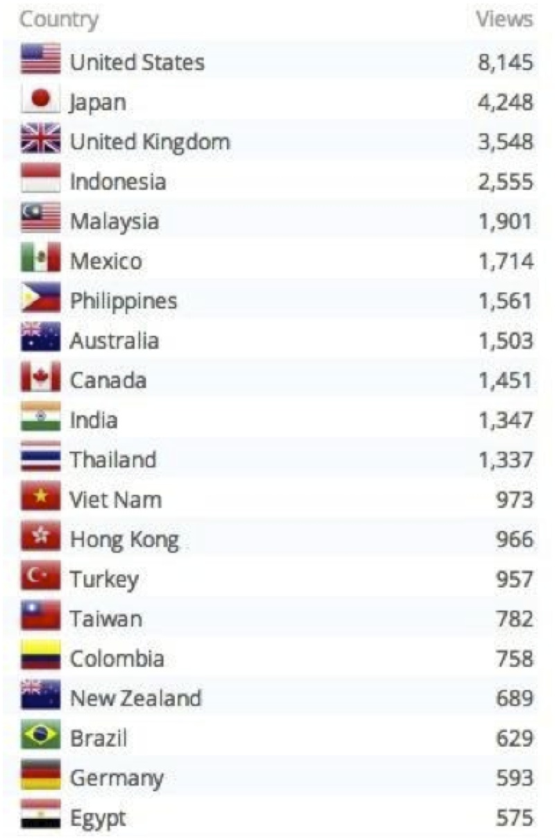 Figure 1. Number of Views in One Year by the Top 20 Countries (from November 1 2012 to October 31 2013)