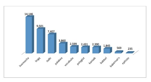 Ten websites from the recommendation list qualified for analysis: babbel, babelnation, ephisto, italki, kantalk, livemocha, linq, palabea, polyglot-learn-language, and vocabulix. Recurring parts of the URLs (e.g.: “http://” or “.com”) are deleted from this article. Polyglot-learn-language is shortened to polyglot in this article.
