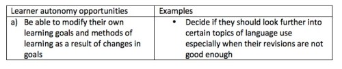 It is not uncommon for students to make mistakes when revising. Hence it is advisable for students to send in more than one draft to improve their written work before it is finalized (Ferris, 1998). Working on the revised drafts can give students opportunities to take responsibility for their own learning, as they have to explore the identified problems in greater depth making use of the online resources. Table 2 shows the learner autonomy opportunities provided at this stage.