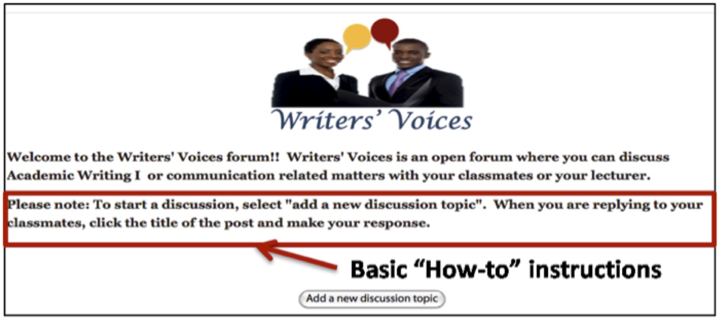 In recent years, there have been changes to the demography of students entering tertiary-level institutions (Stewart-McKoy, in press) as well as the Information and Communication Technologies (ICT) boom and the potential of online, distance learning and e-learning opportunities. Given these rapid changes and the potential for improving students’ learning with ICT, the unit which services the institution with these modules was recently mandated to provide, in addition to the face-to-face courses, online versions of academic writing courses beginning with the 2013/14 academic year.