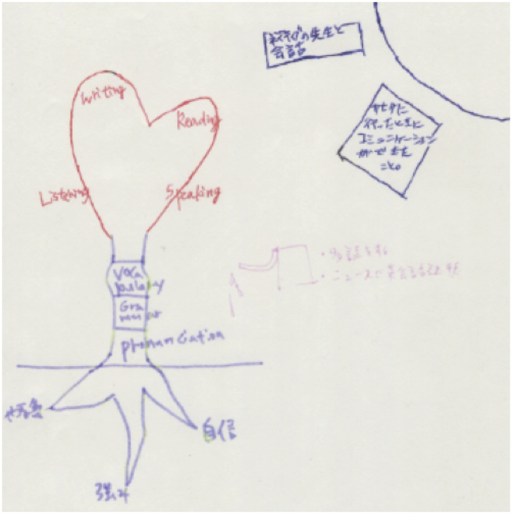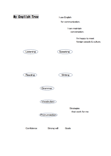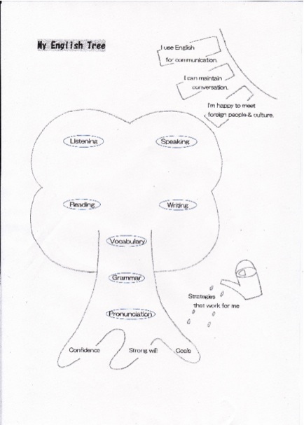 - While I was drawing the Tree, I realized myself I wanted to learn English skills so that I could study abroad. But I’m not confident enough. I’d like to have confidence in learning English.