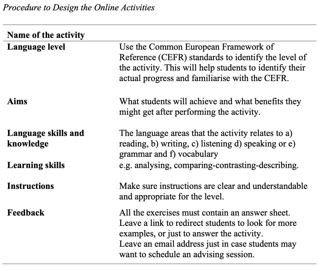 Therefore, considering the importance language advising has in promoting the development of learner autonomy and as a result of the restriction of personal contact due to the COVID19 pandemic, it was decided to keep providing advising sessions. This enabled us to make students feel that, in times of turbulence, there was still an opportunity for them to continue working. Sheerin (1997) states that the process of becoming autonomous does not necessarily happen in isolation and teachers have a crucial role in helping students to become more autonomous. This is likely to include the use of SALCs which are places that provide opportunities for learners to explore language and develop their own learning strategies (Gardner & Miller, 1999).