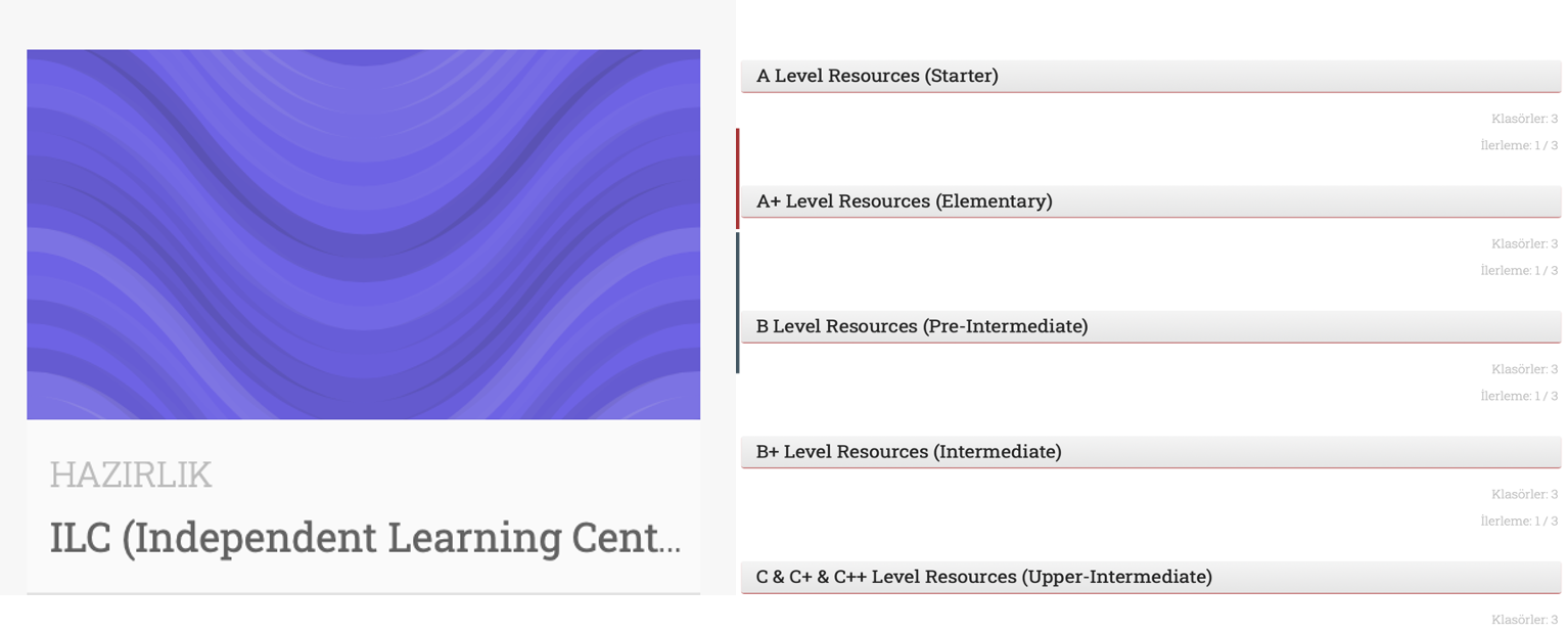 During summer, our preparations for the new academic year mainly focused on digitalizing the ILC resources and setting up an online platform to present resources to learners. Also, we searched for alternative ways to make ILC activities accessible to learners in the upcoming academic year. As part of the digitalization process of ILC resources, all worksheets, booklets as well as skills and strategy pamphlets were put into digital formats. In coordination with the other units at AYBU SFL, an ILC Moodle class was created, and all registered students as of the 2020-2021 academic year were assigned as members of this class (see Figure 2).
