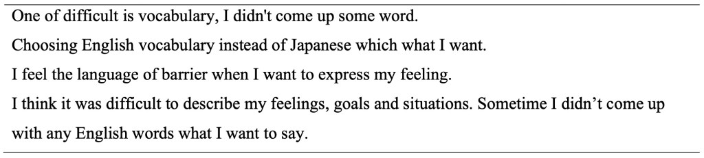 Participants’ Responses to Being Asked, “What difficulties did you have when using English for coaching?”