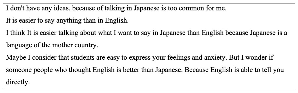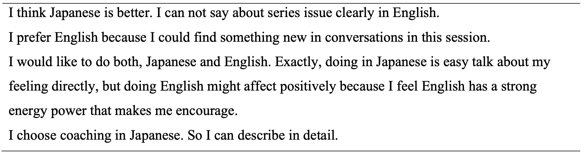 Participants’ Responses to Being Asked, “If you had a serious issue, would you prefer coaching in English or Japanese? and why?”