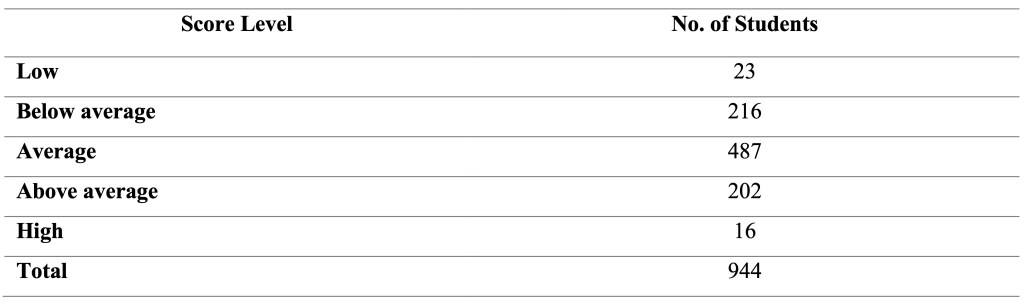 The questionnaire was distributed to a total of 944 respondents who are new students who recently completed their secondary education and enrolled in the university. The collected data were then analyzed using statistical methods, including descriptive statistics and inferential statistics. The results of the analysis were used to draw conclusions and make recommendations for future research and practice.