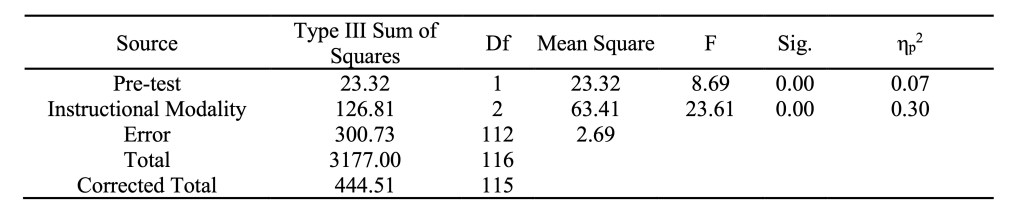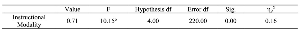 Wilks’ Lambda Multivariate Test of the Effect of Instructional Modality