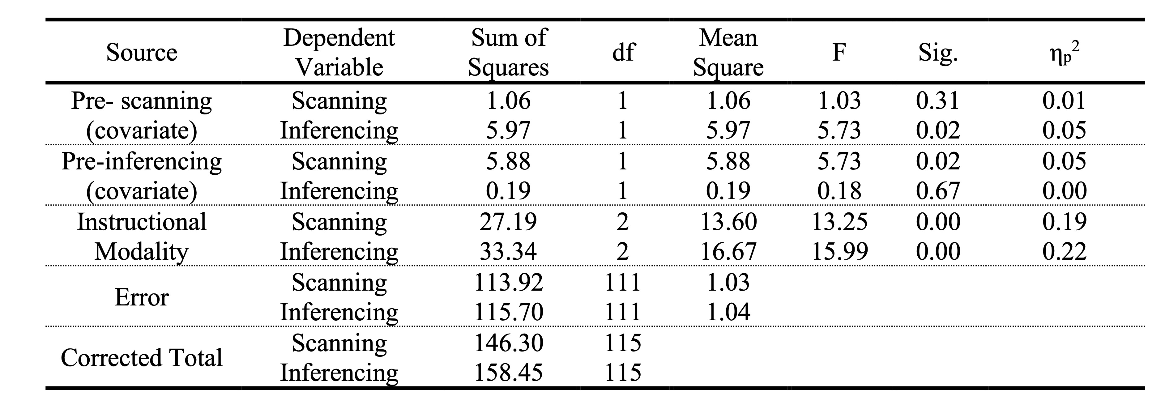 Effect of the Instructional Modality on the Sub-Skills (after Controlling the Effect of the Pre-Test)