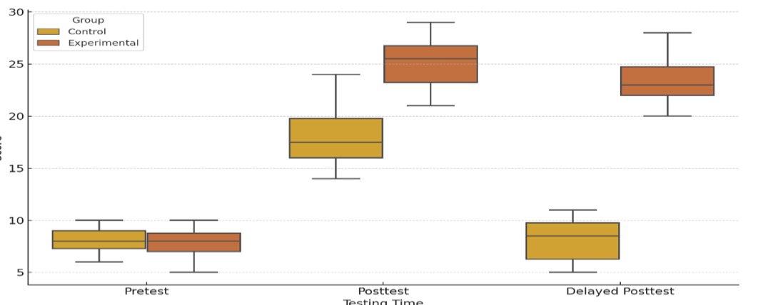 The control group’s posttest results are supposed to indicate how well conventional instructional techniques facilitate immediate vocabulary acquisition for learners. However, it was revealed that conventional methods, which focus on rote memorisation rather than active cognitive involvement, lead to a lack of retention.