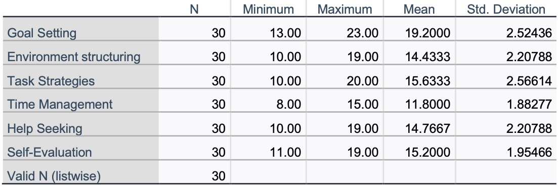 The Descriptive Analysis of the 24-Item Self-Regulated Learning Questionnaire