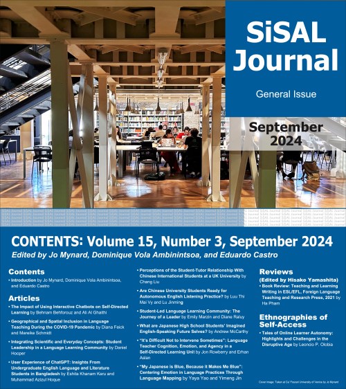 June, 15(2). Special Issue: Self-Access and Self-Directed Language Learning in Europe. Edited by Elena Borsetto, David McLoughlin, and Jo Mynard.