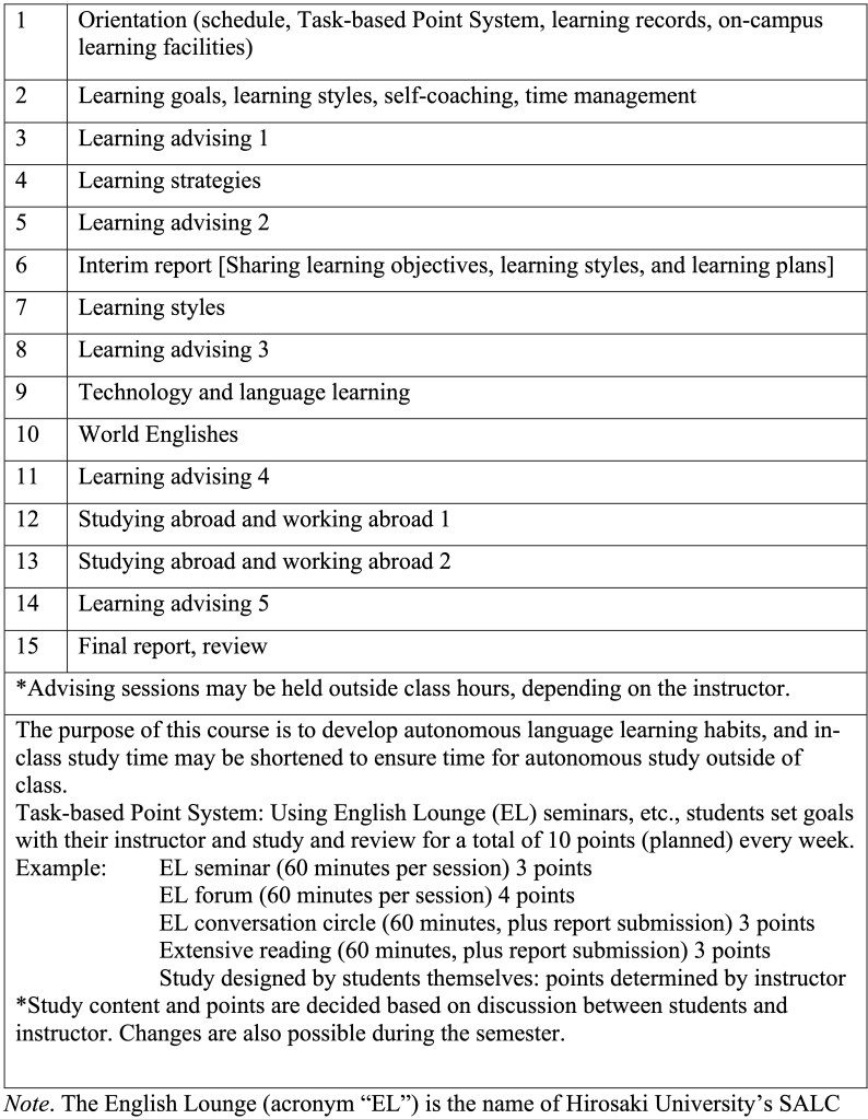 As previously mentioned, learner autonomy is one of the cornerstones of SALCs. However, Hirosaki University only had a limited way of providing guidance for students on their way to becoming autonomous learners in its SALC (called the English Lounge). Like many universities, time and financial constraints, as well as workforce considerations, limit the possibilities for the SALC. This doesn’t imply that there was no guidance provided at Hirosaki University’s SALC in the past, but guidance was often offered in an unstructured way and heavily reliant on the willingness of faculty members to spend their time in the SALC, meaning they couldn’t do other job-related tasks. By embedding the SALC within the minor, students have structured access to advice and materials that support their language learning, thereby enhancing their experience and engagement inside and outside the traditional classroom. Receiving a certification of finishing the minor not only serves as formal recognition of their skills and efforts but also provides a tangible asset for job hunting.