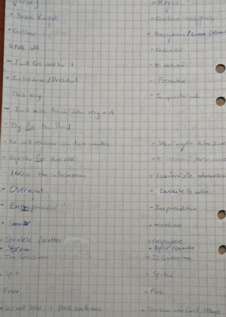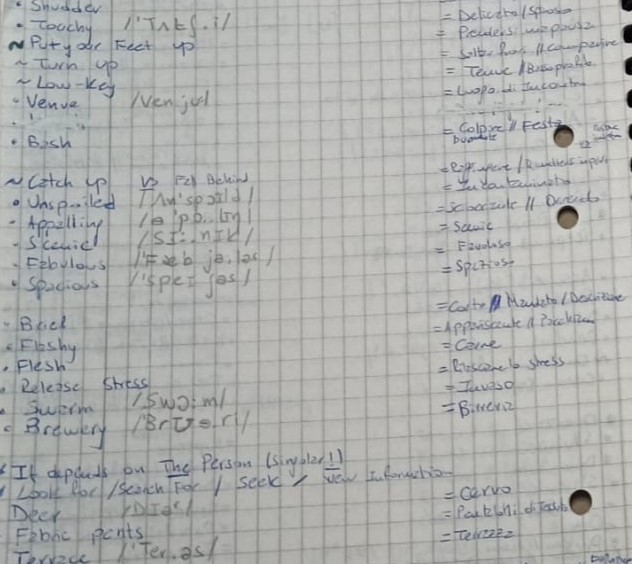 – 8:00-10:30: Repetition of the new vocabulary in my booklet (+pronunciation and synonyms).