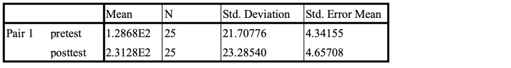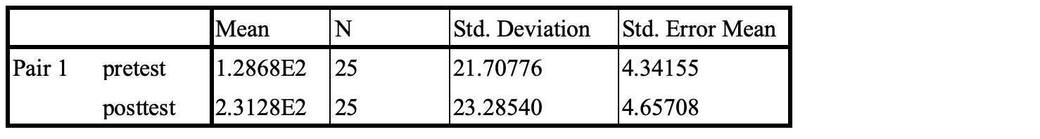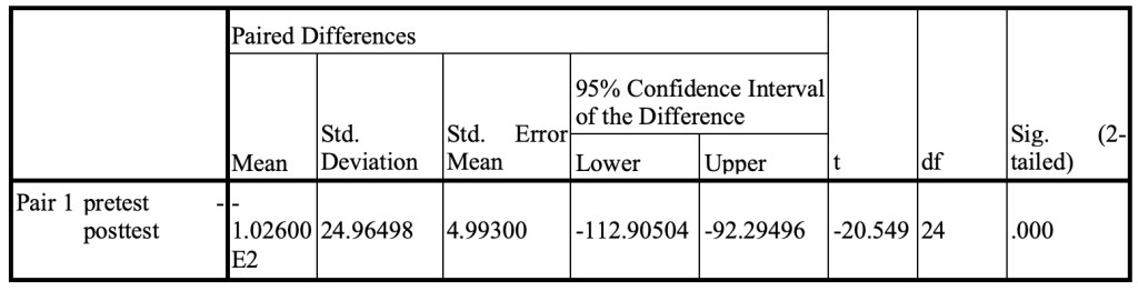 A paired-sample t-test was conducted to gain a better understanding of the results of the experimental group.