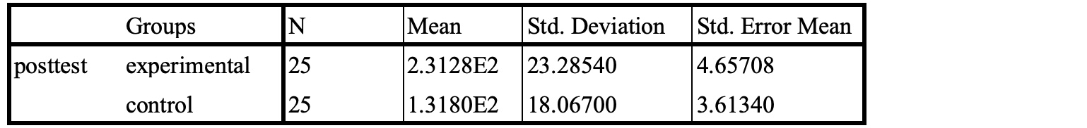 The Descriptive Analysis of Experimental and Control Groups in Posttest