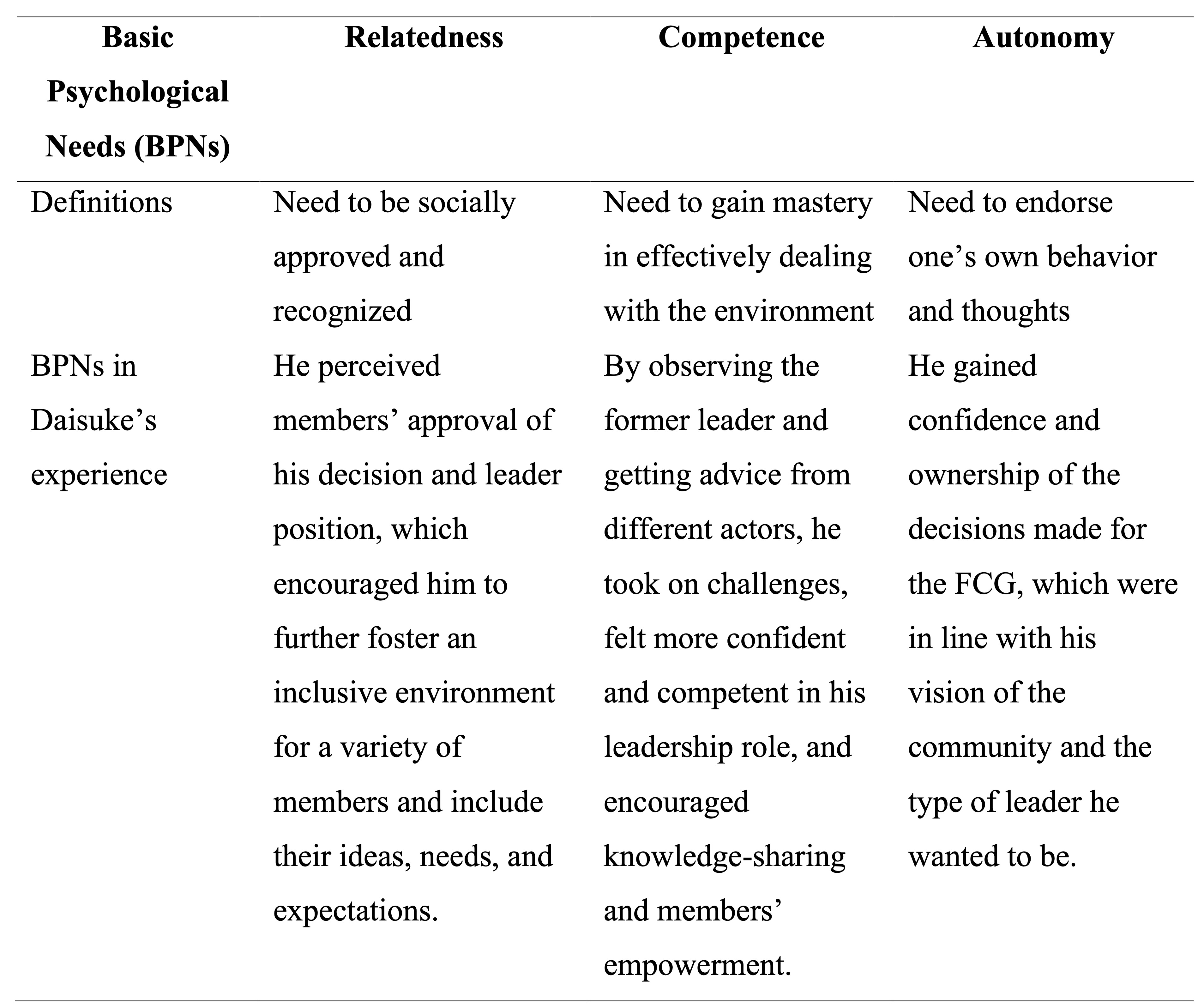 Basic Psychological Needs in Daisuke’s Leadership Experience