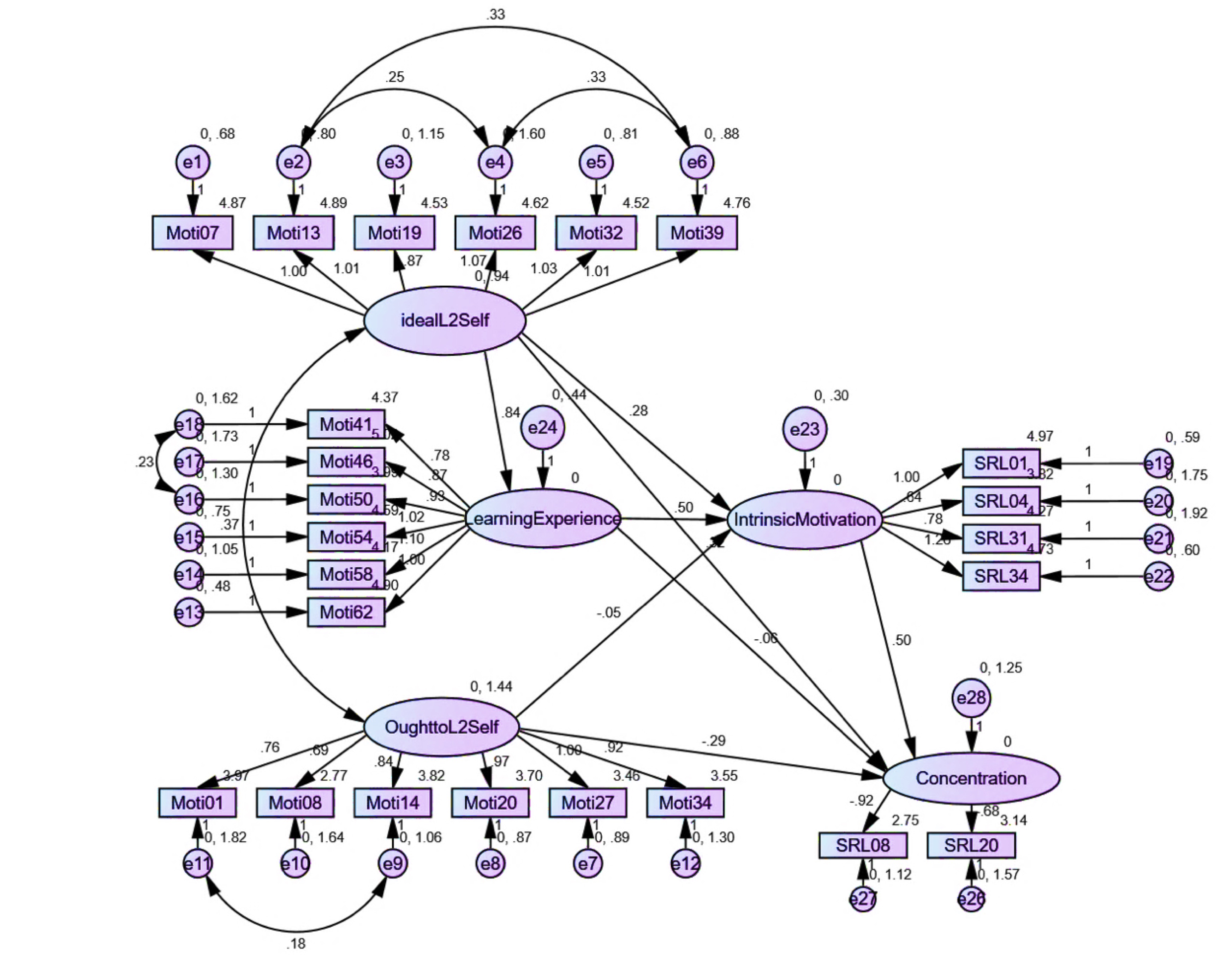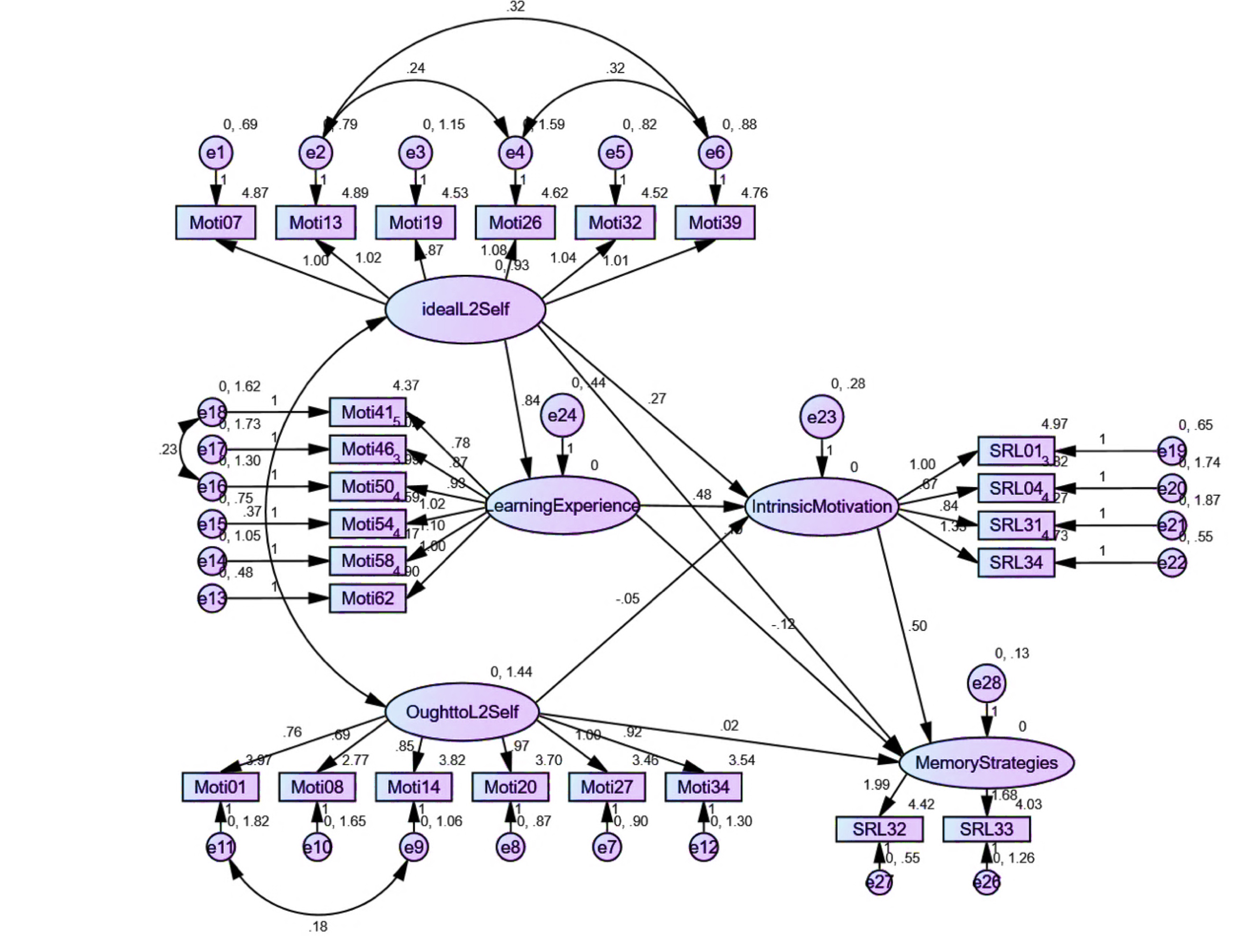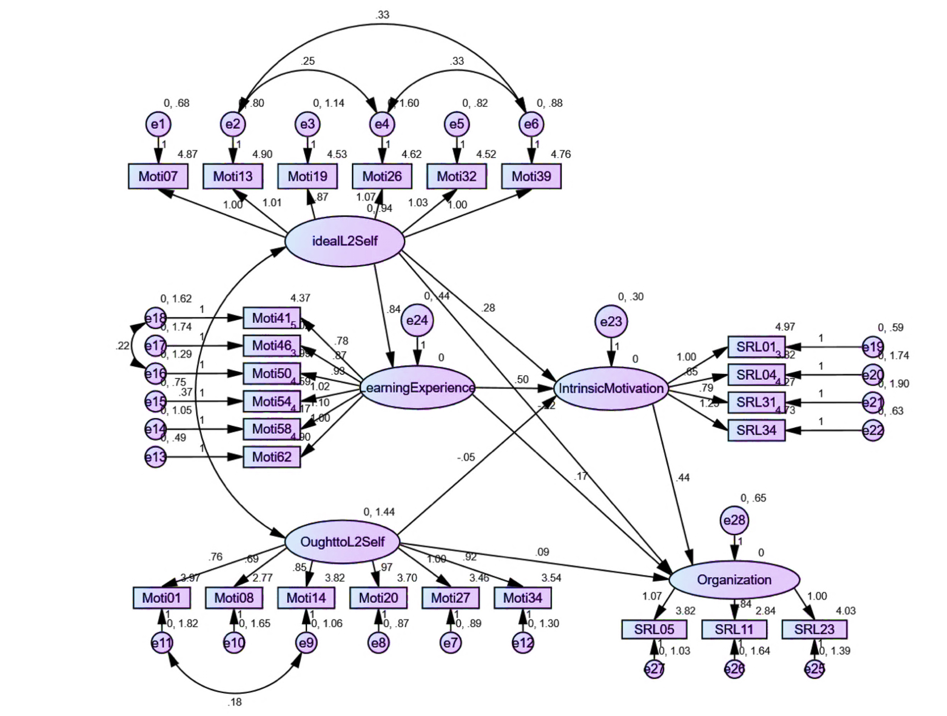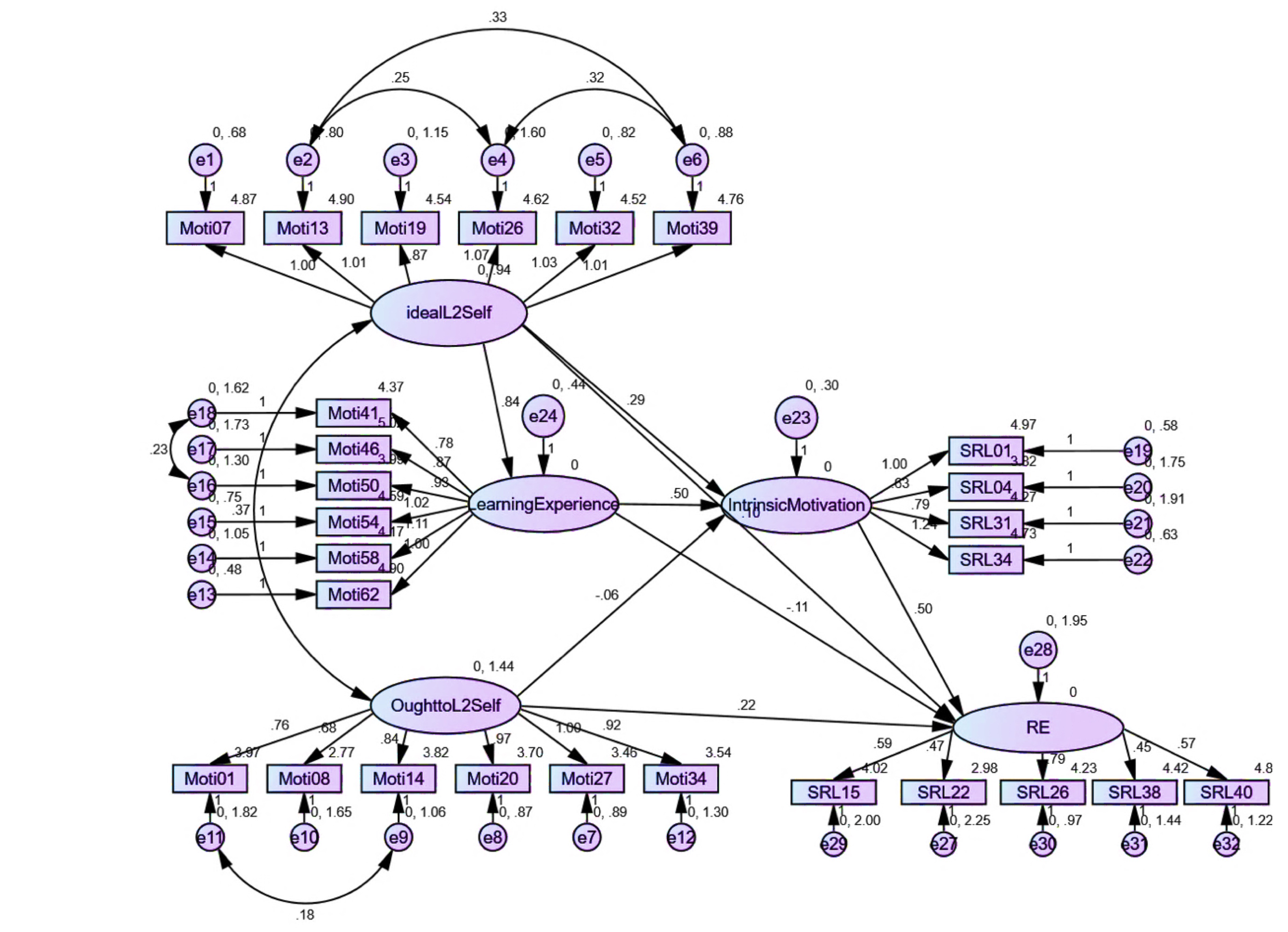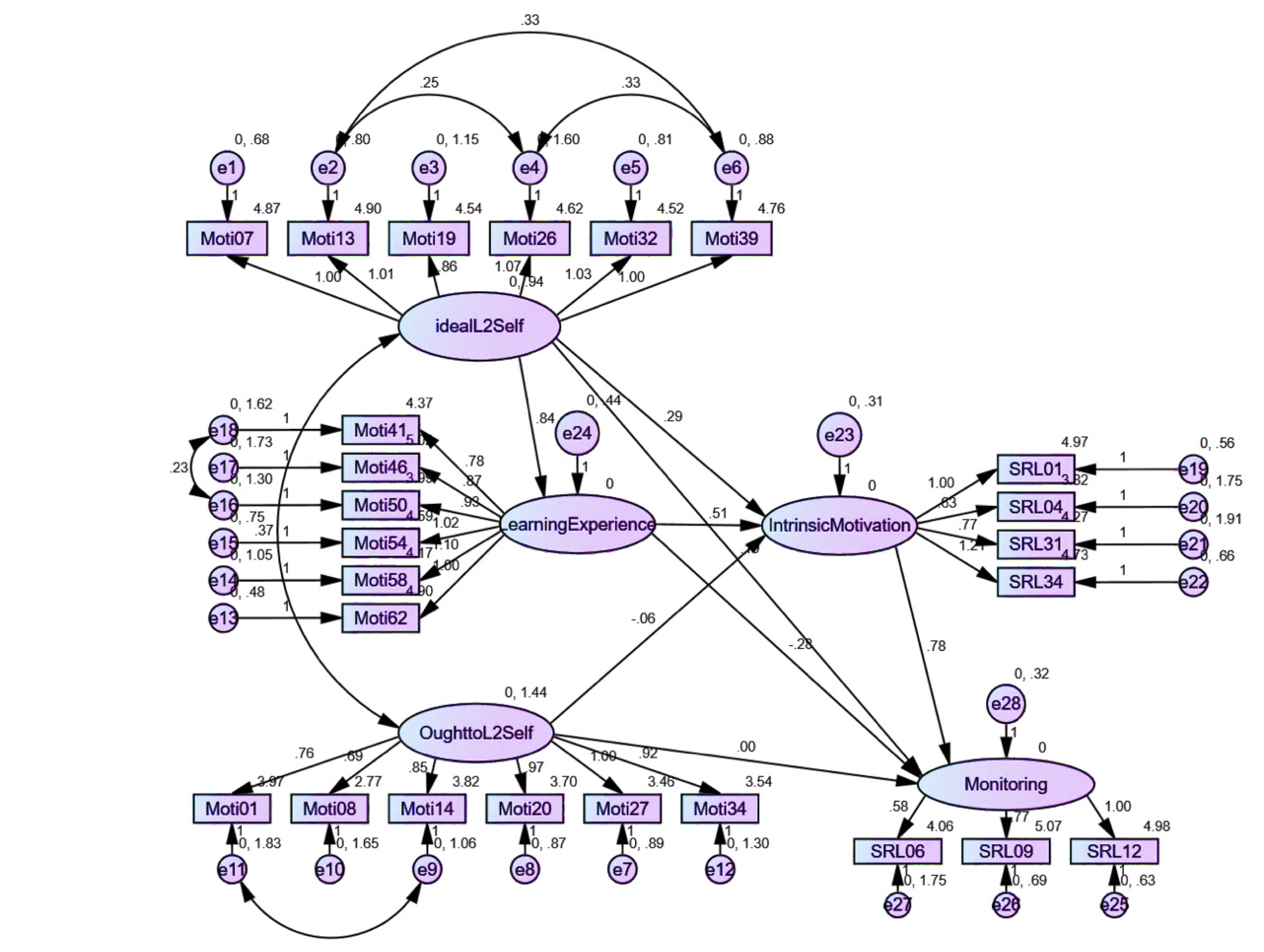 Although ought-to L2 self was found to significantly predict some aspects of SRLL, its low path coefficients echo the findings in almost all the studies. For example, weak relationships have been reported between ought-to L2 self and intended efforts (Taguchi et al., 2009; Papi, 2010) and online self-regulation (Zheng et al., 2018). In a study conducted by Li and Zhang (2021), it was empirically shown that ought-to L2 self is a negative predictor of L2 achievement. The results of the present study have revealed that ought-to L2 self does not affect IM and has negligible direct effects on most of the constituents of SRLL. The greater correlation between ought-to L2 self and self-evaluation might be explained by the tendency of learners to assess themselves based on language ability measures valued by both their teachers and families. This process can encourage growth in instrumentality-prevention and family influence, factors that directly impact the development of an ought-to L2 self (Taguchi et al., 2009).