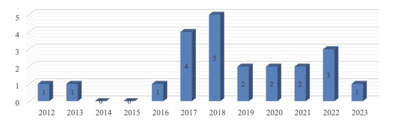 This section presents the results of the study in light of its questions. For answering the first question: What are the common practices for promoting LLA in Saudi universities?, the researcher identified 25 previous studies published between 2010 and 2023 that mostly focused on LLA in Saudi universities in an EFL context. Referring to an established coding scheme by Plonsky and Gass (2011), the researcher identified eight major categories to analyze these studies. Table 2 presented the coding scheme including categories and items elicited from the synthesized studies. Figure 1 illustrates the temporal distribution of these published studies targeting LLA, highlighting their year-based number. It shows an increasing interest in recent years, a peak was in 2017 and 2018, but that number began to decline afterward.